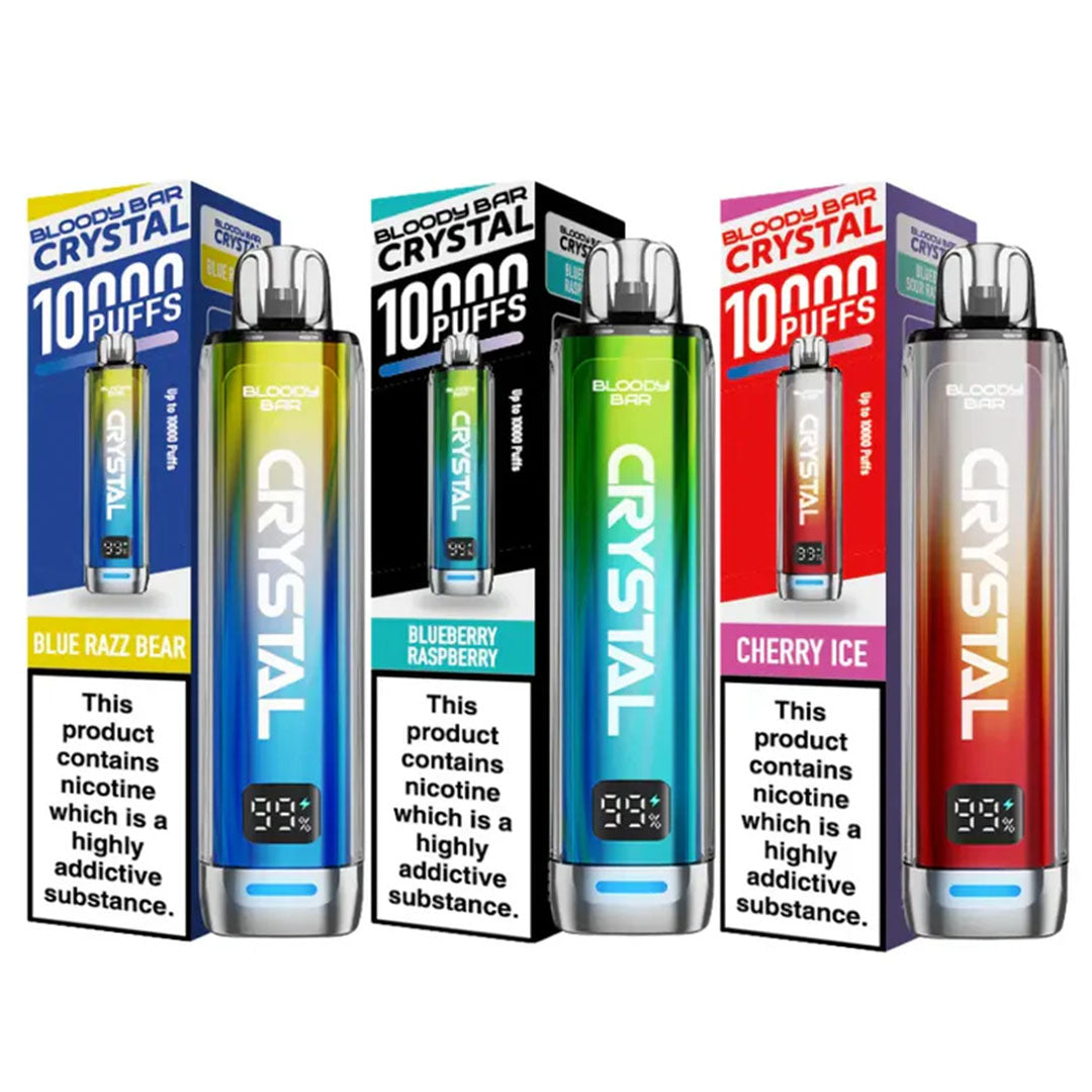 Experience the Bloody Bar Crystal Prefilled Vape Kit, engineered for ease, reliability, and exceptional taste. Offering up to 10,000 puffs per unit, it features a robust USB-C rechargeable battery and a state-of-the-art mesh coil to ensure consistent, full-bodied flavour with every draw. The kit includes a clear LCD screen displaying battery life and e-liquid status, keeping you informed at all times. With no need for refills or coil changes, simply recharge, vape, and enjoy. Its sleek, transparent design combines sophistication with user-friendly functionality, perfect for discerning vapers seeking a premium, hassle-free device.