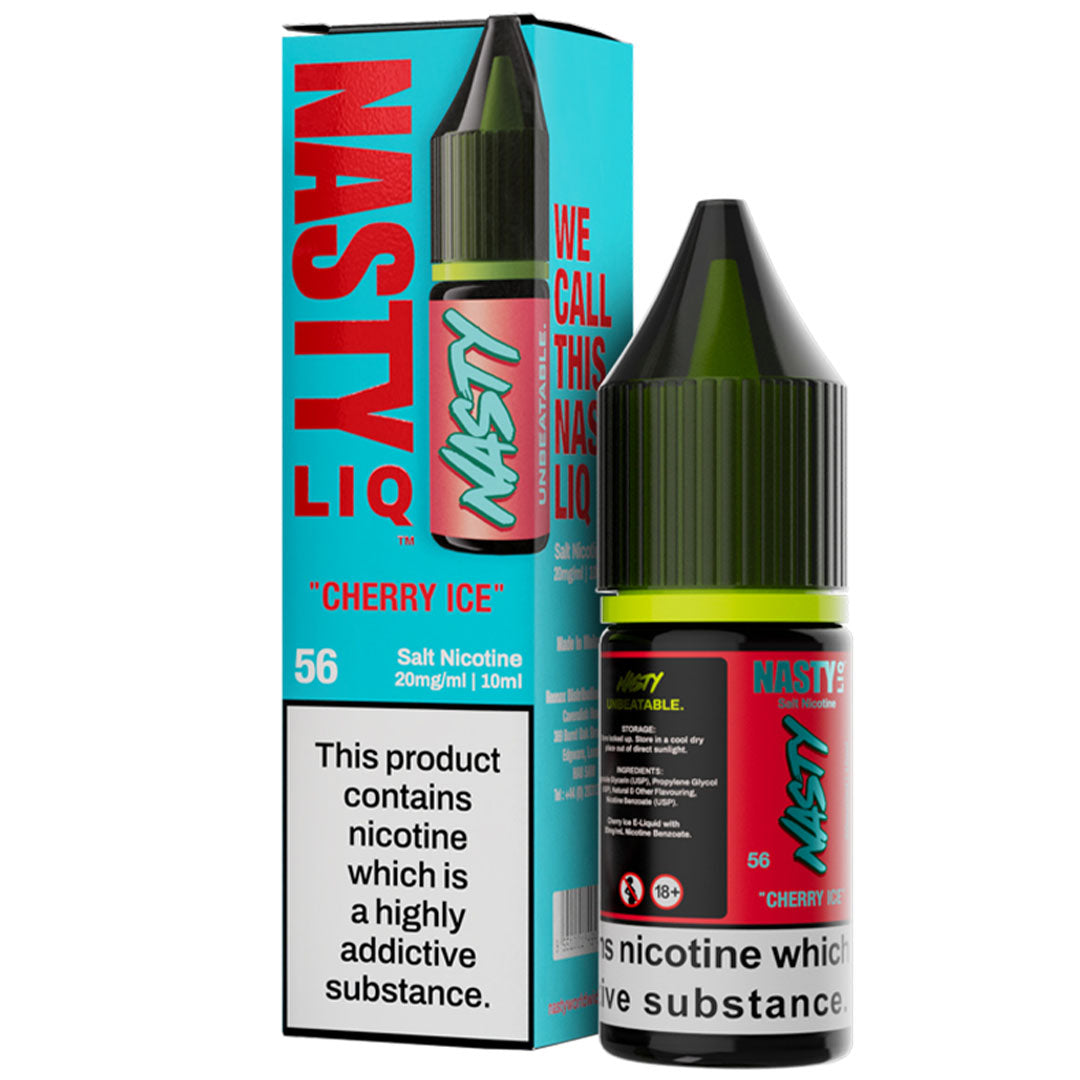 Nasty Liq's Cherry Ice Nic Salt e-liquids feature a deep and flavourful dark cherry taste, accented with a crisp, icy exhale. This cooling blend is suitable for novice and experienced vapers alike.