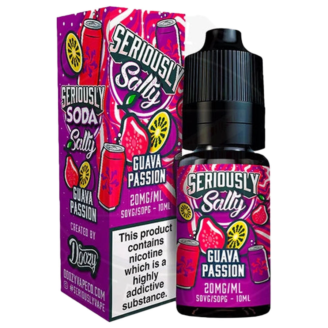 Guava Passion nic salt e-liquid by Seriously Soda is a Crisp, juicy guava is combined with the exotic flavour of sweet, tangy passionfruit to create a mouthwatering taste. based on the well-known soft drink flavour.