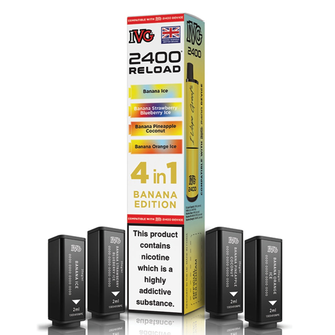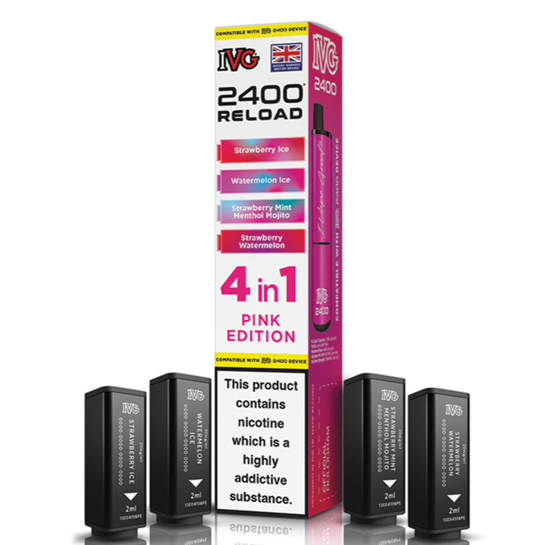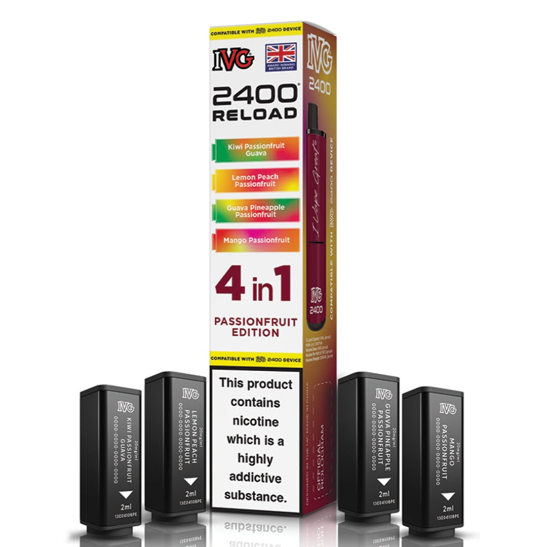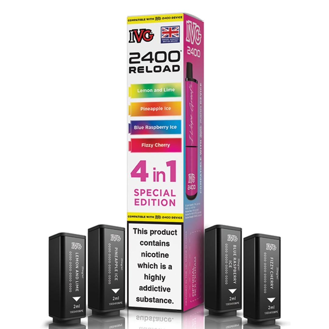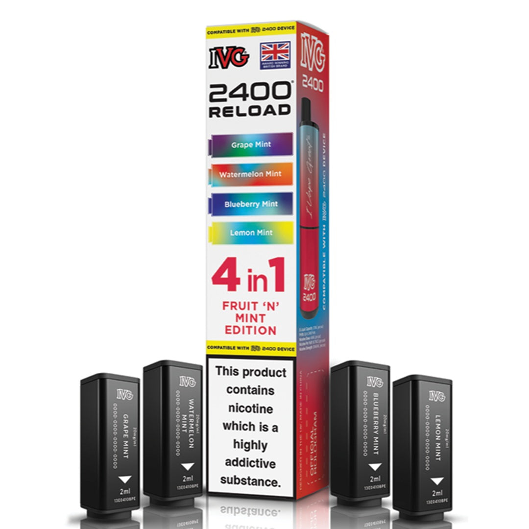 Experience unmatched flavour and efficiency with IVG's innovative 2400 RELOAD 4-in-1 prefilled pods. Each pack includes four unique 2ml pods containing 20mg nicotine salt, expertly formulated for a smooth and satisfying MTL (mouth-to-lung) experience. These highly regarded flavours are inspired by IVG's best-selling e-liquids and come in a wide variety of options - from classic fruity flavours to cool menthol, sparkling beverages, and tropical fusion blends.