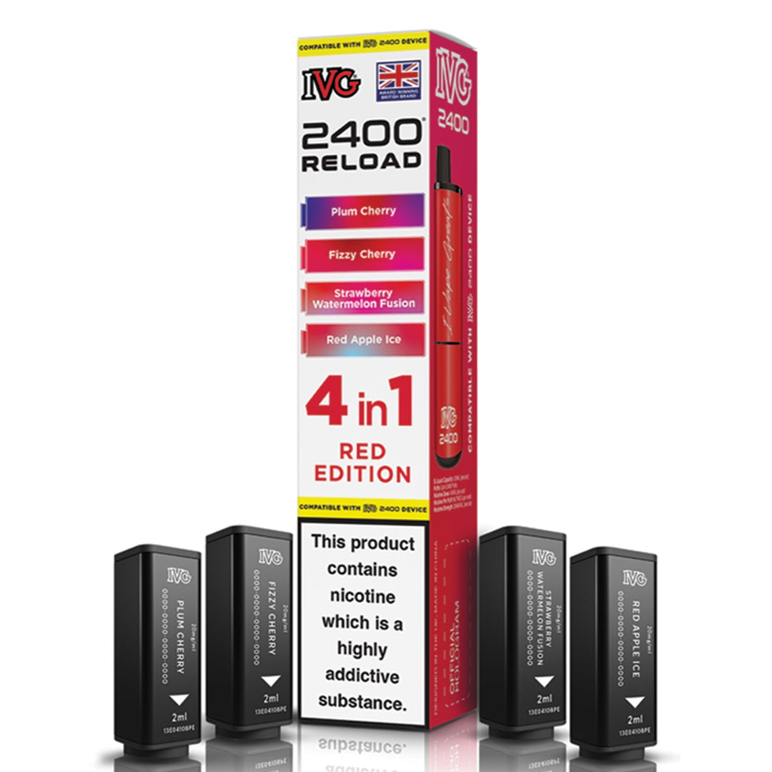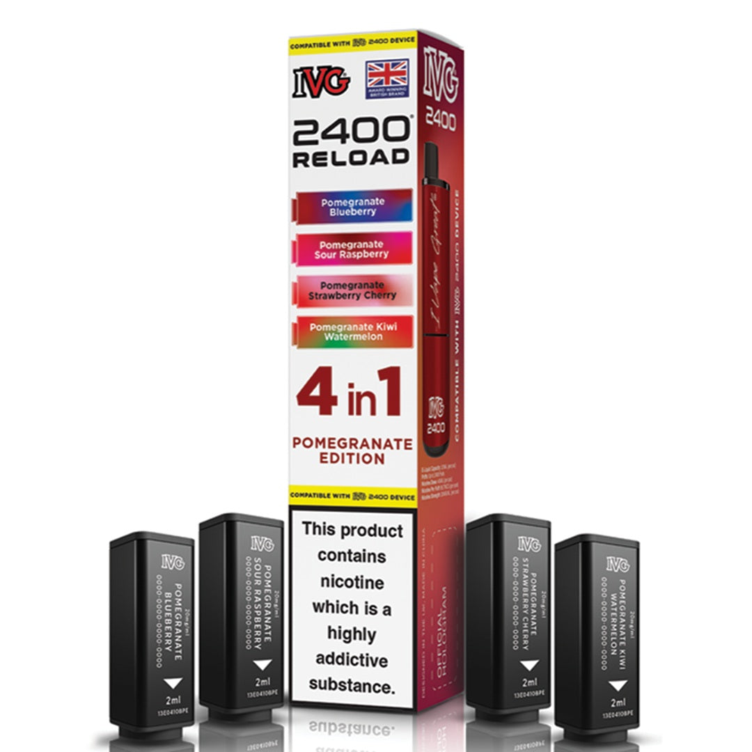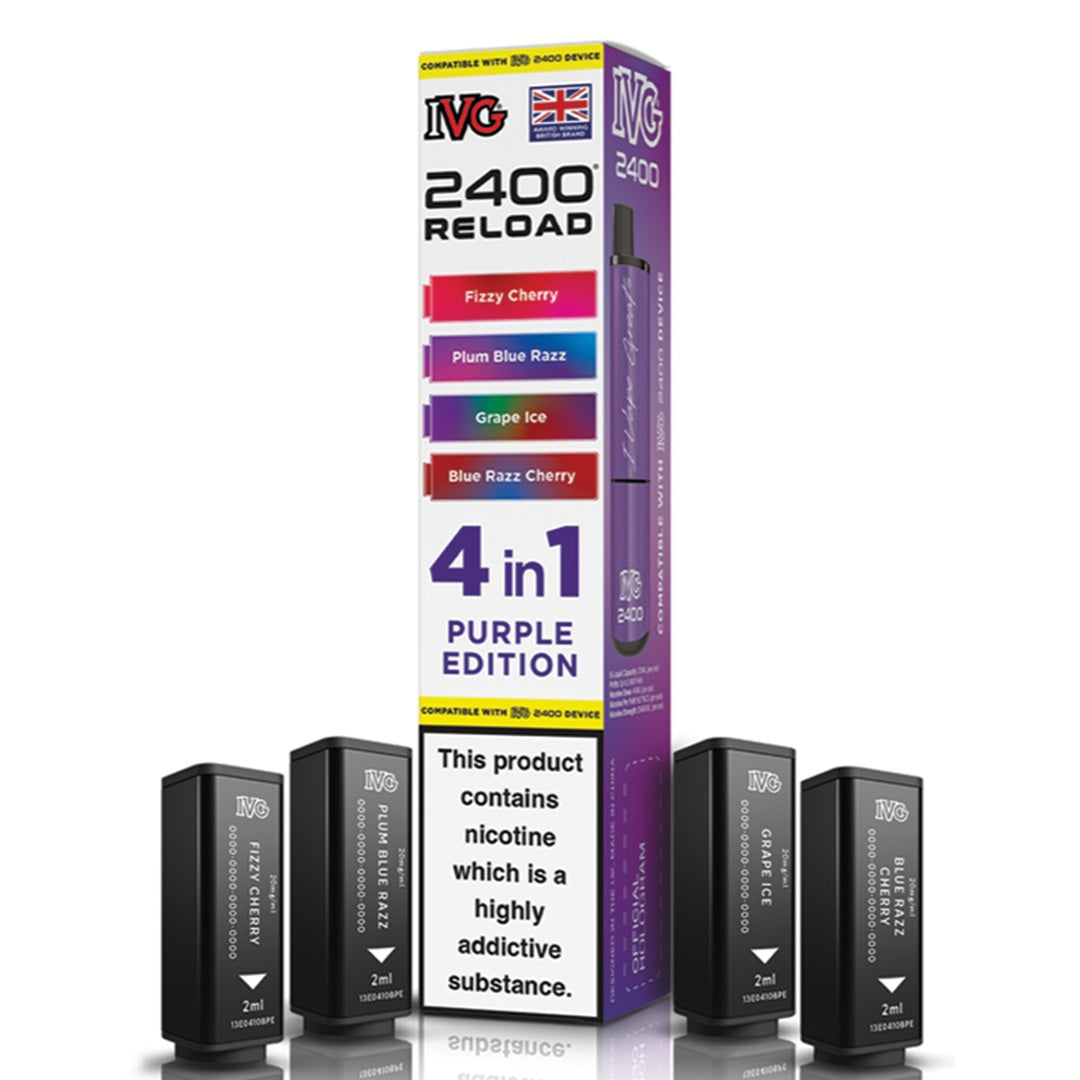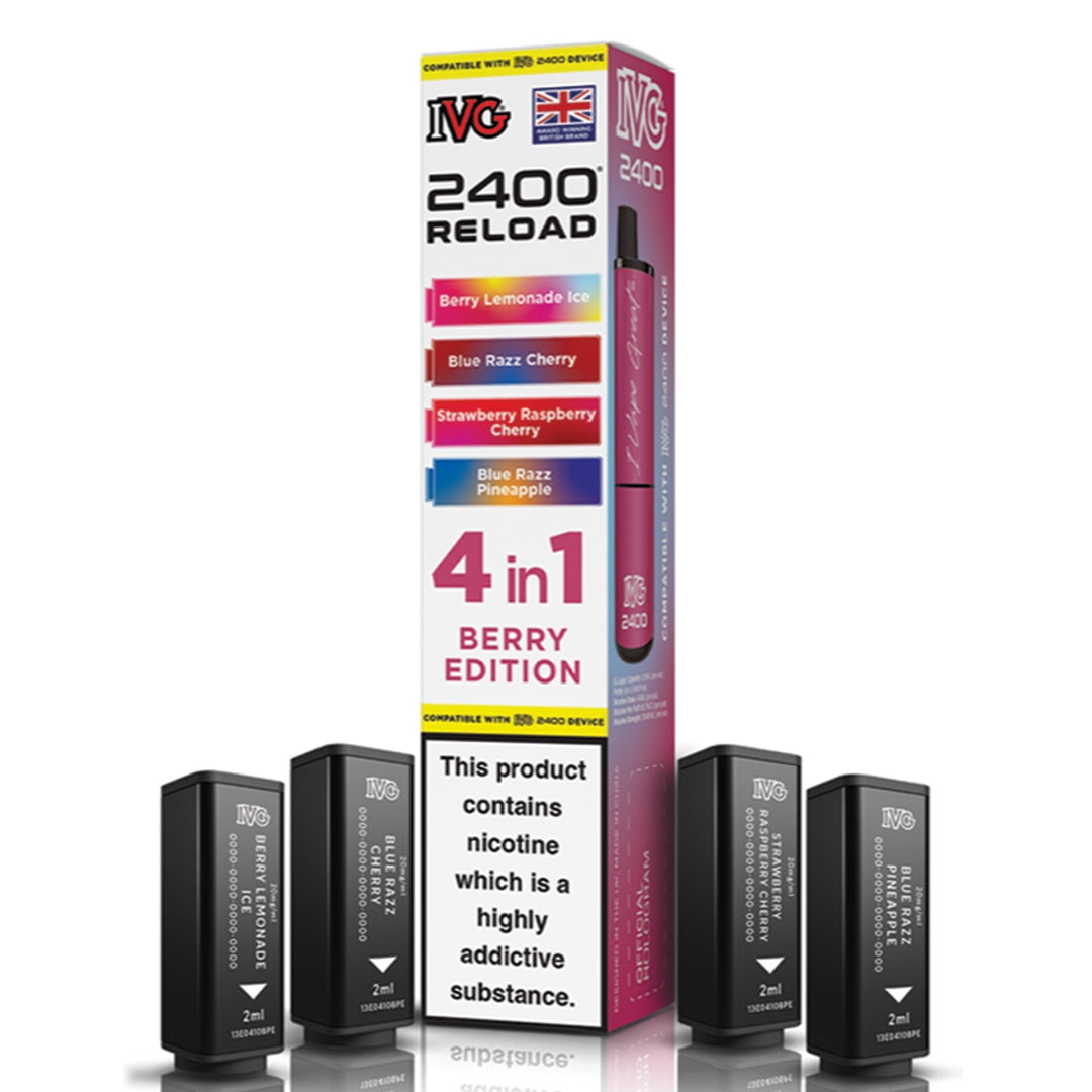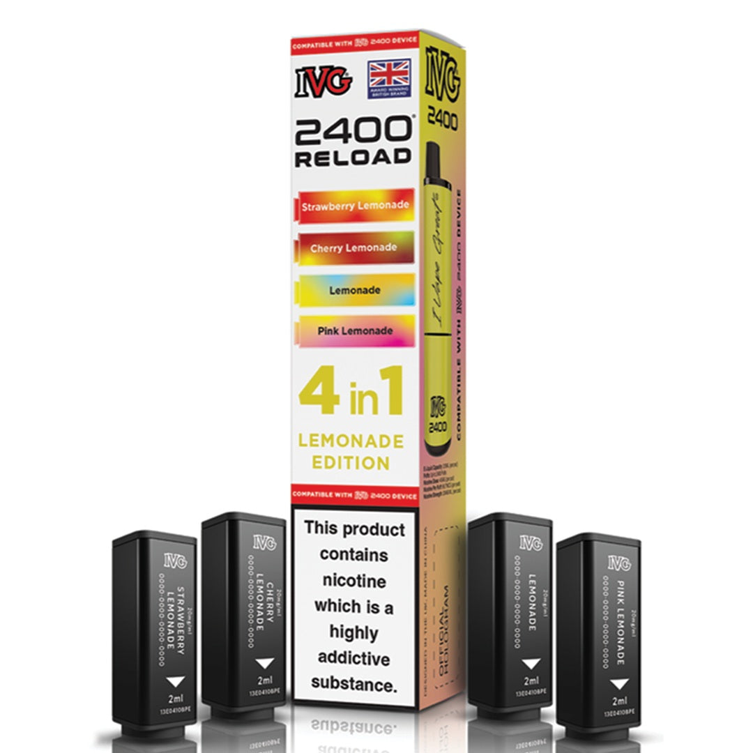 Experience unmatched flavour and efficiency with IVG's innovative 2400 RELOAD 4-in-1 prefilled pods. Each pack includes four unique 2ml pods containing 20mg nicotine salt, expertly formulated for a smooth and satisfying MTL (mouth-to-lung) experience. These highly regarded flavours are inspired by IVG's best-selling e-liquids and come in a wide variety of options - from classic fruity flavours to cool menthol, sparkling beverages, and tropical fusion blends.