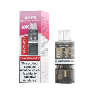 The Juicy Pod NOVAMAX 10K prefilled refill pack boasts a unique finish of distinct cherry notes that are followed by a refreshing icy exhale..