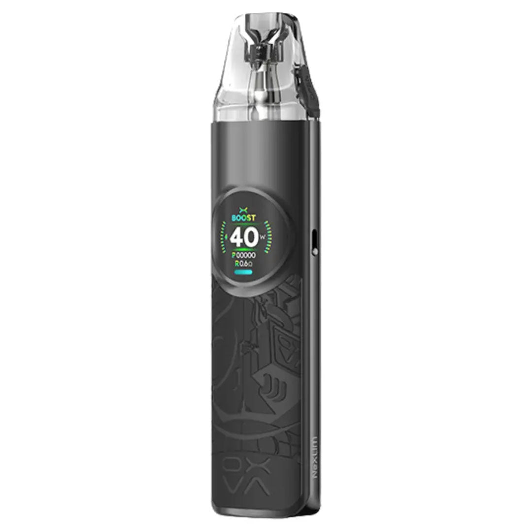The Oxva NeXlim pod kit boasts a clear LED display with three interactive themes, providing customisable options for users.