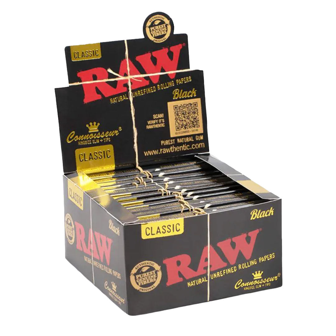 RAW Black Connoisseur 1¼+ Tips 24 Packs Per Box