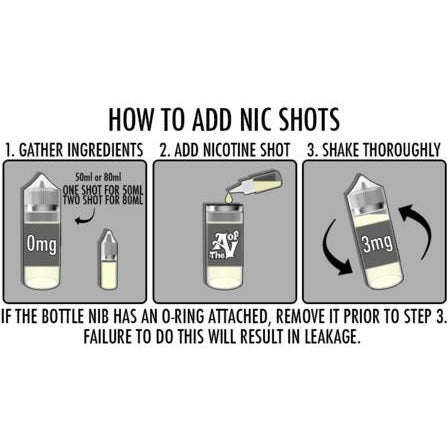 there's room to add one 10ml nic shots of your choice. For example, adding one 18mg, 10ml nic shots will create 60ml of 3mg e-liquid.