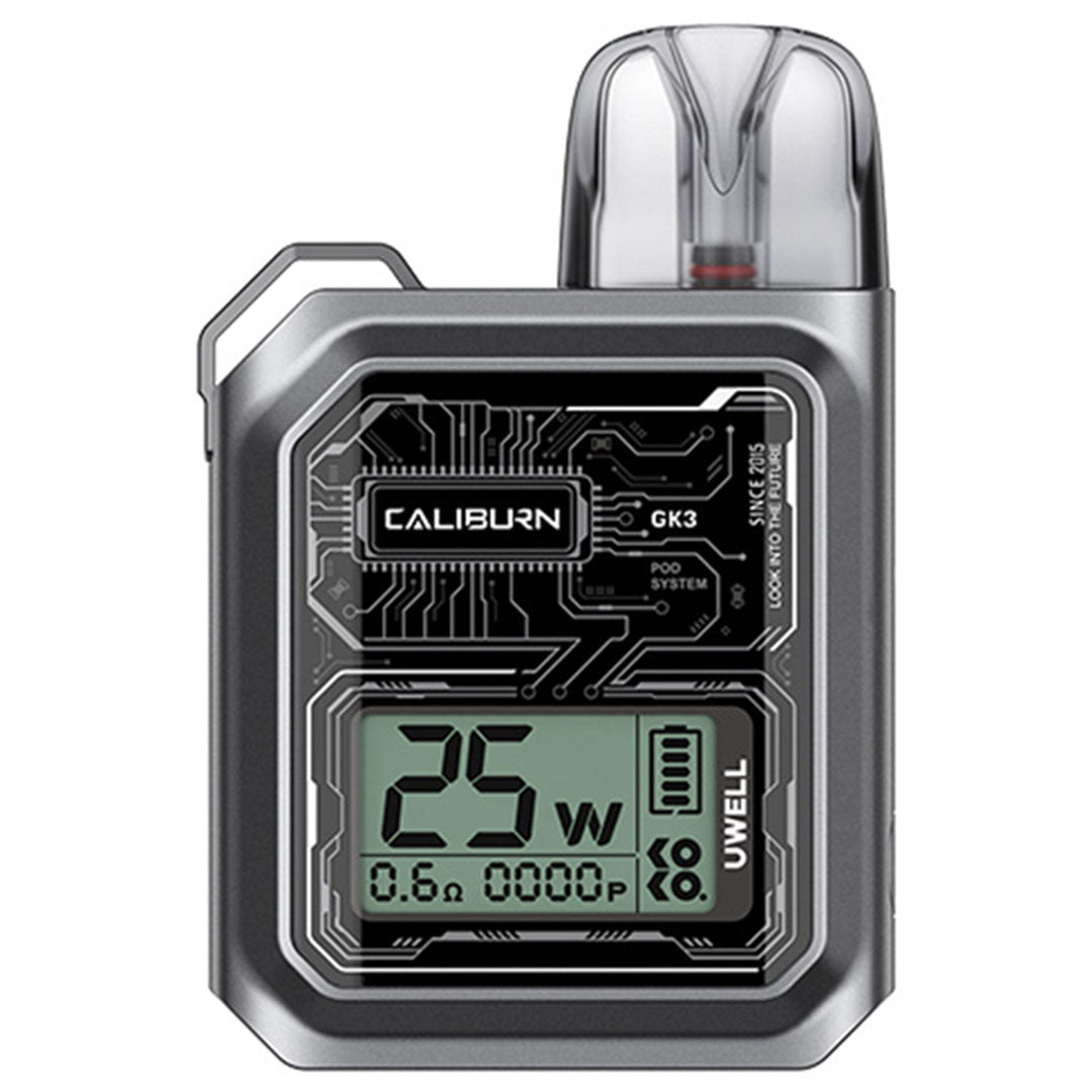 The Uwell Caliburn GK3 kit is a versatile vape that caters to vapers of all levels. With a 900mAh battery, it offers sufficient power for vaping without frequent recharging. Its power output range of 5-25W makes it a dependable option for MTL and RDTL vaping. This kit is specifically designed to be used with Caliburn G3 refillable pods and comes with two 2ml pods to get you started.