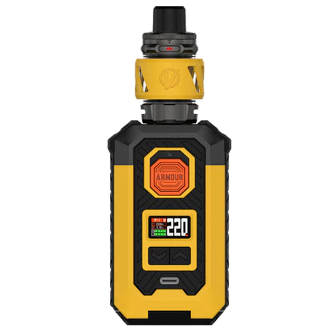 The Armour Max sub ohm kit includes a device locking button, Corex mesh coils, and an Axon chip for increased performance.