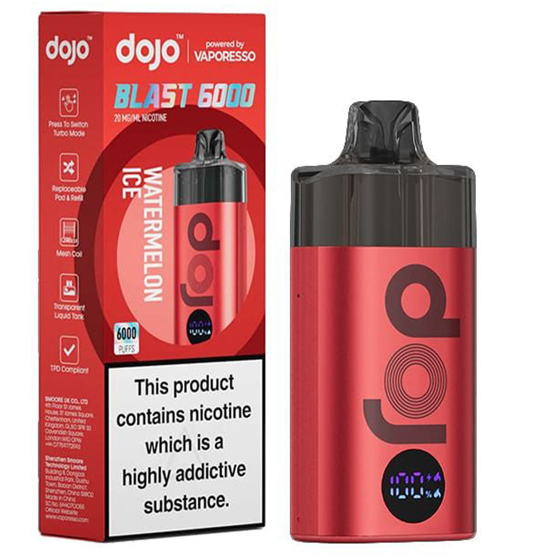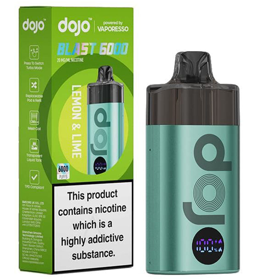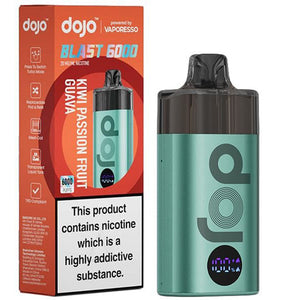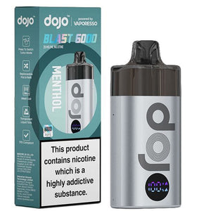 The Vaporesso Dojo Blast 6000 vape kit is ideal if you’re after a higher puff count This vape device is designed for repeated use and includes a device, a 10ml refill container, and a 2ml prefilled pod. Together, they provide up to 6000 puffs. Unlike disposable vapes, this kit can be recharged and the Dojo pod and refill container can be replaced, allowing for continuous vaping.